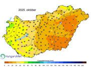 Az október is száraz hónap volt, a havi csapadék országos átlagban – az eddig beérkezett adatok alapján – 30,5 mm, ami 40%-kal marad el a szokásos mennyiségtől (1991–2020-as átlag: 50,9 mm).