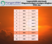A 2026. március középhőmérséklete a HungaroMet Nonprofit Zrt. mérései alapján országos átlagban 8,32 °C, ami 2,47 fokkal meghaladta az 1991–2020-as átlagot, amivel a nyolcadik legenyhébb március 1901 óta. A márciusi csapadék országos átlagban – az eddig beérkezett adatok alapján – csupán 22,5 mm, ami 34%-kal elmarad a szokásostól (az 1991–2020-as átlag: 34,4 mm). Ennek a csapadéknak a jelentős része a hónap utolsó hetében hullott le.